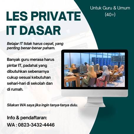Jika Bapak/Ibu ingin belajar IT dengan cara yang tenang, sederhana, dan sesuai kebutuhan sehari-hari, silakan menghubungi: